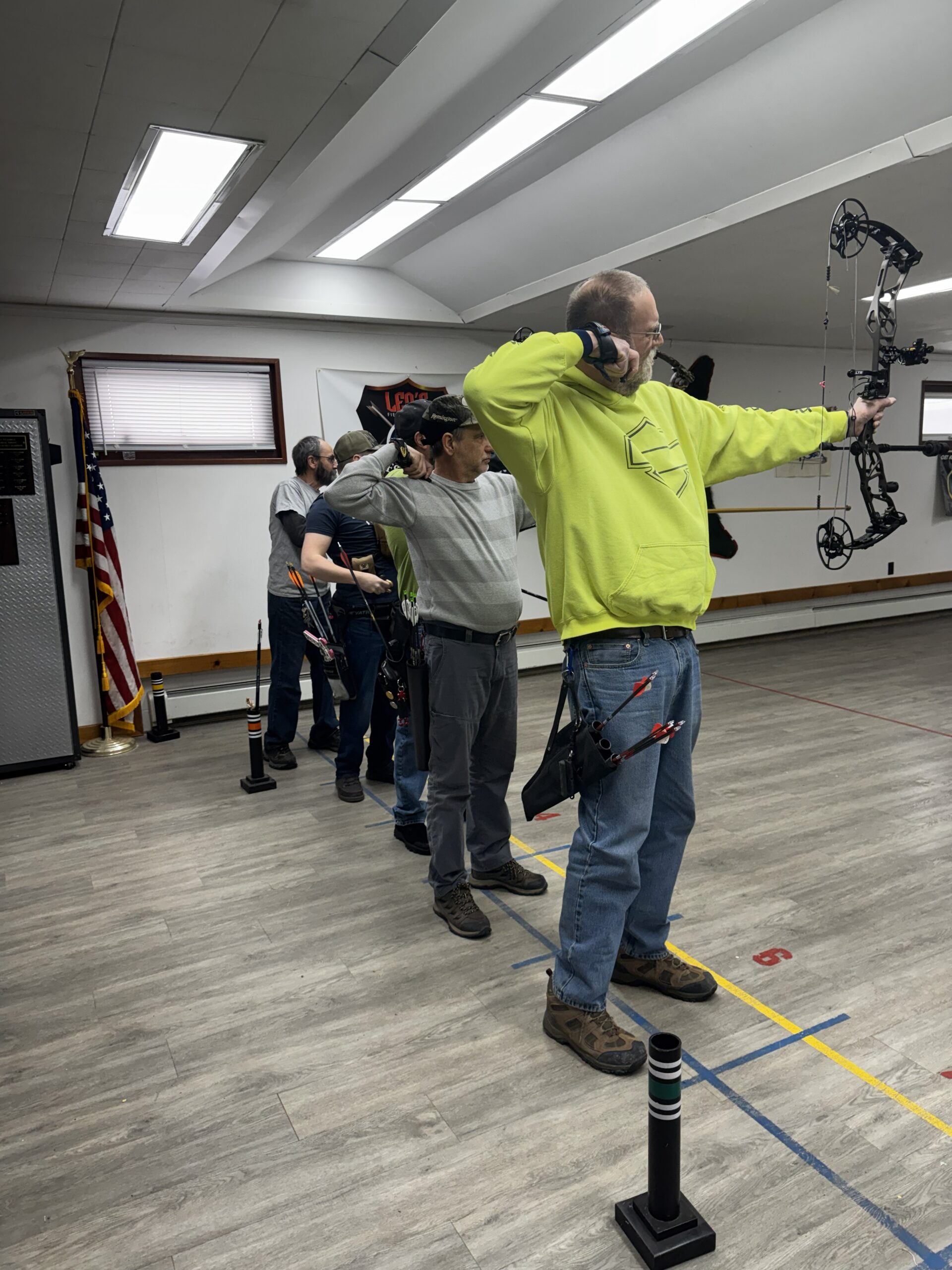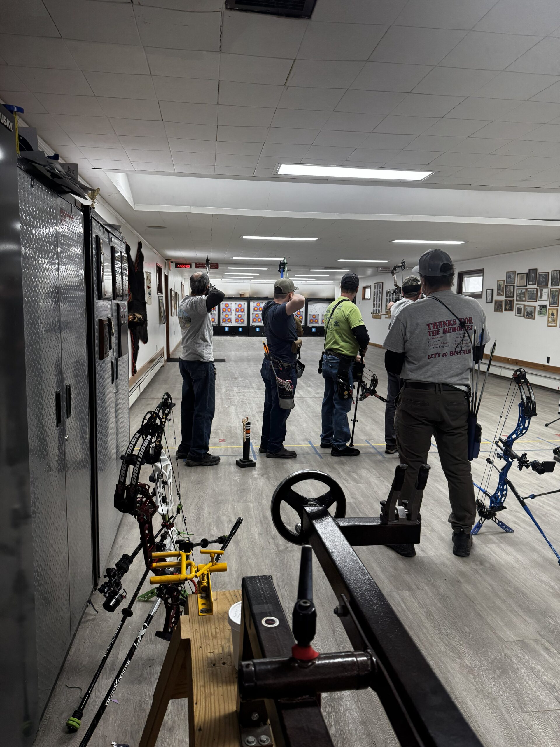 Located inside the clubhouse is a 10 position, 30 yard, fully lighted archery range. Butts are adjustable for short yardage. Additionally, a separate butt for crossbows. Open to members in good standing, notwithstanding scheduled events, 24 hr/day.